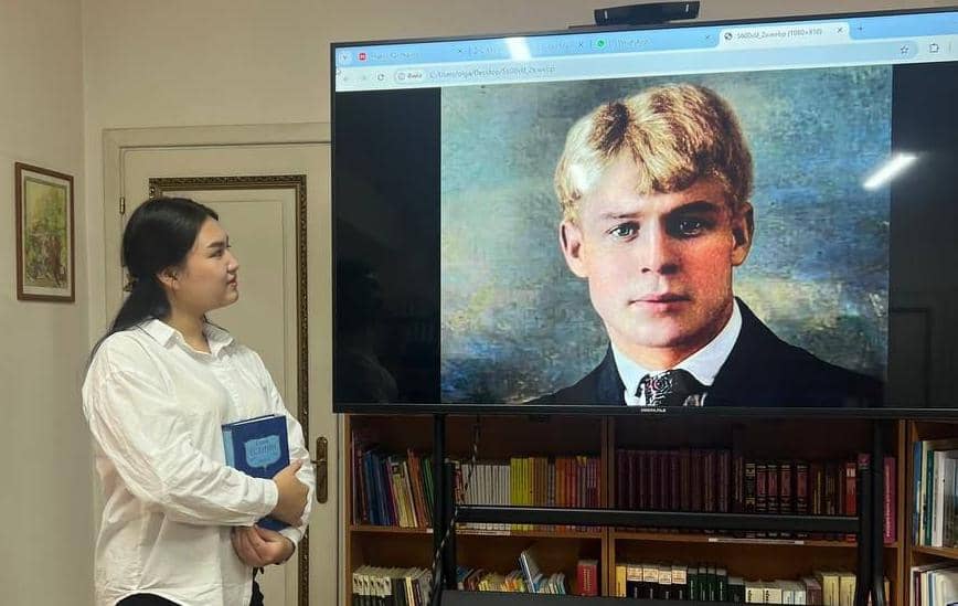 В преддверии 130-летнего юбилея со дня рождения замечательного поэта Сергея Есенина ученицы нашей школы М.Чотонова (8 В) и С.Сабырбекова (9 Г) приняли участие в марафоне «Селфи с Есениным», проводимом Русским домом в Бишкеке.