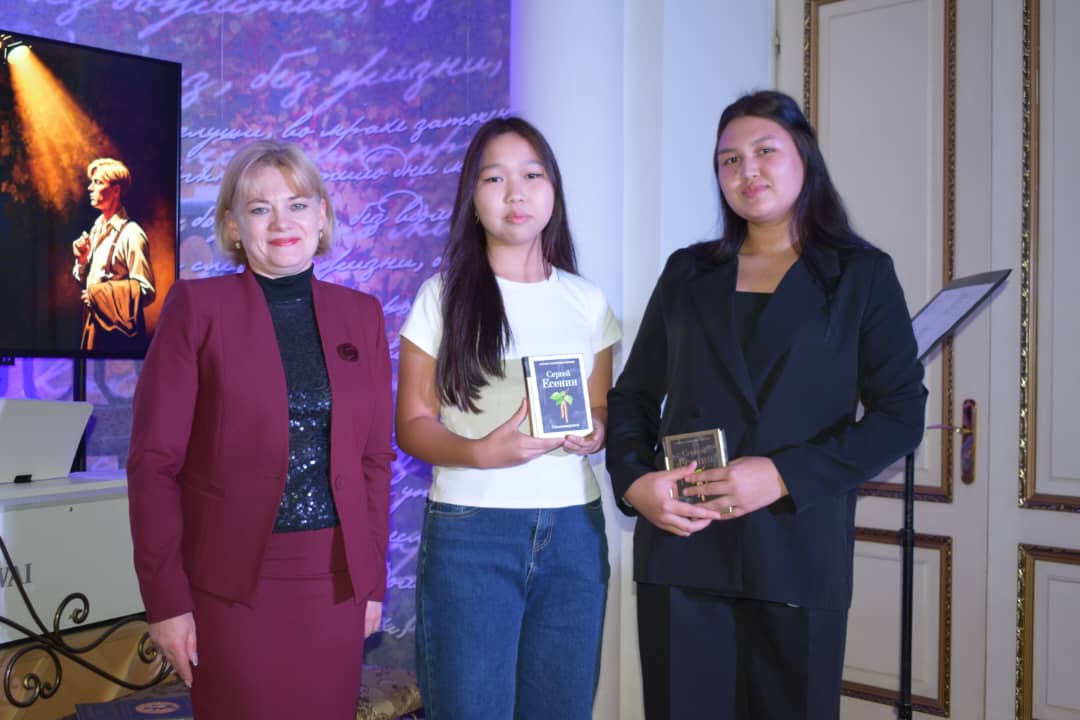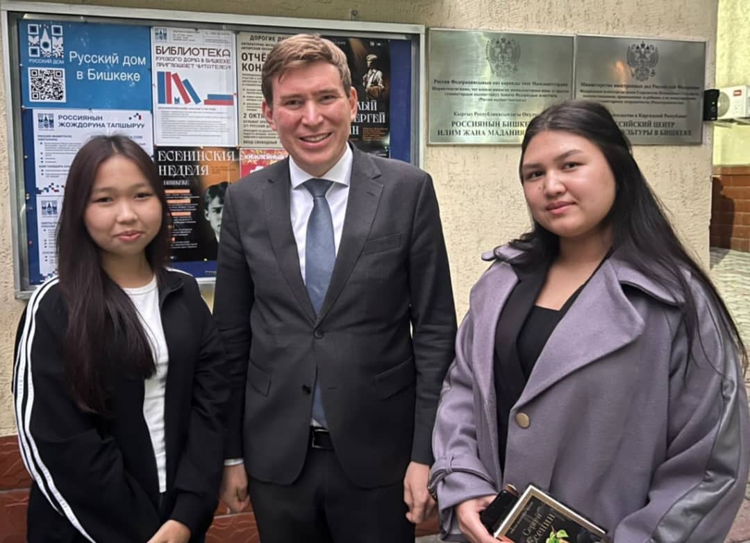 На встрече в Русском доме девочки получили памятные призы, сфотографировались с руководителем Русского дома в Бишкеке Зульхарнеевым А.Ф., получили огромное удовольствие от выступлений великолепных артистов в литературно-музыкальной композиции «Знакомый ваш — Сергей Есенин», пообщались с Ассоль Молдокматовой.
