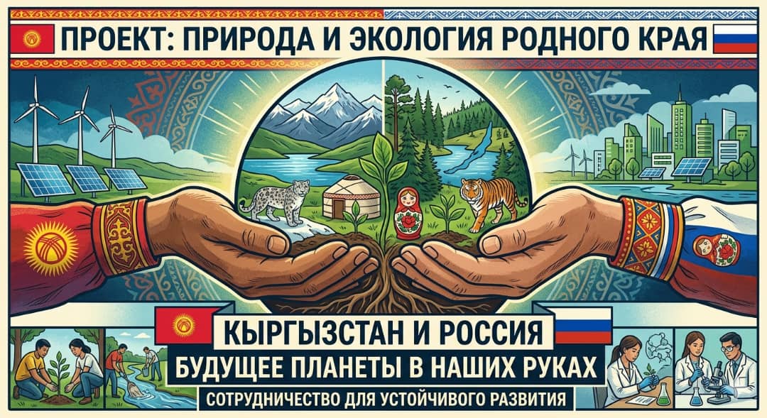 В апреле 2026 года в нашей школе прошел масштабный научно-исследовательский проект «Природа и экология родного края (Кыргызстан — Россия)». Ученики 8–11 классов под руководством куратора Кобцевой Е.С. провели глубокое исследование экосистем двух стран, проанализировали острые проблемы современности и предложили свои пути спасения окружающей среды.
