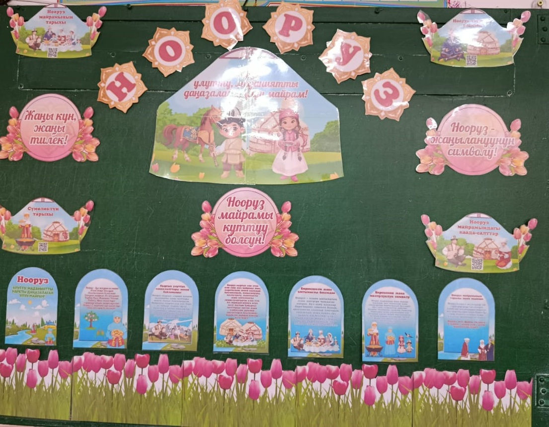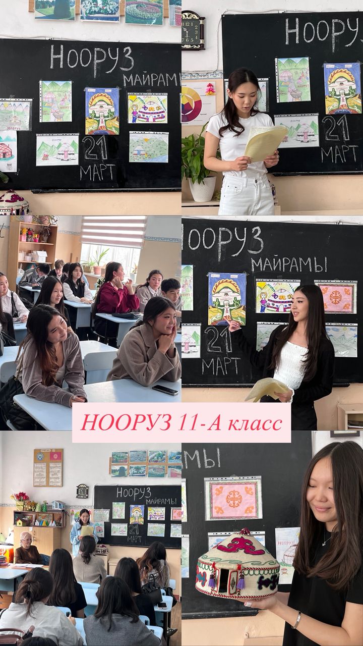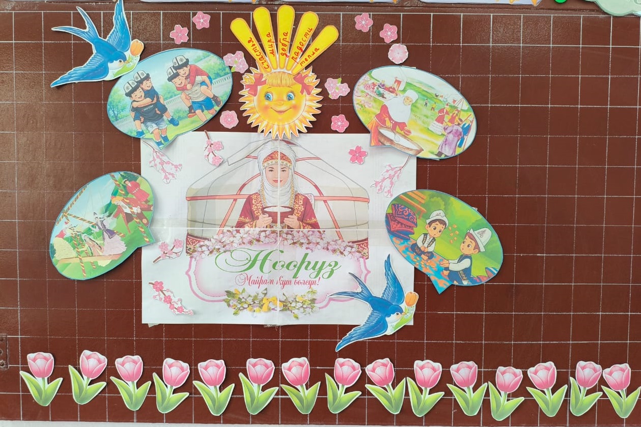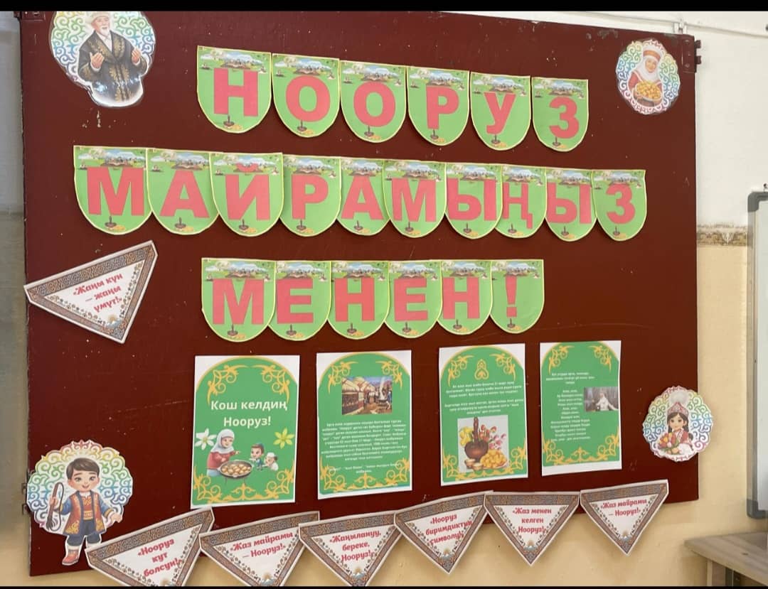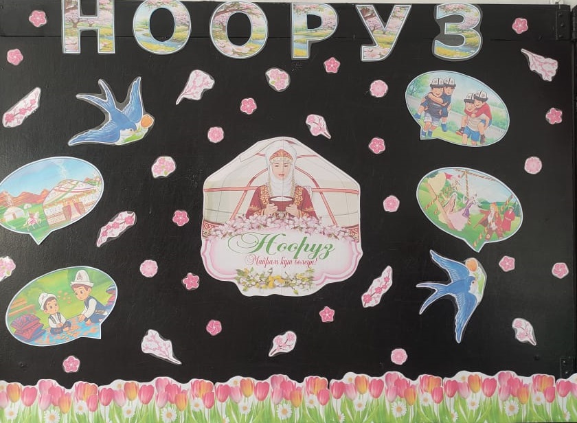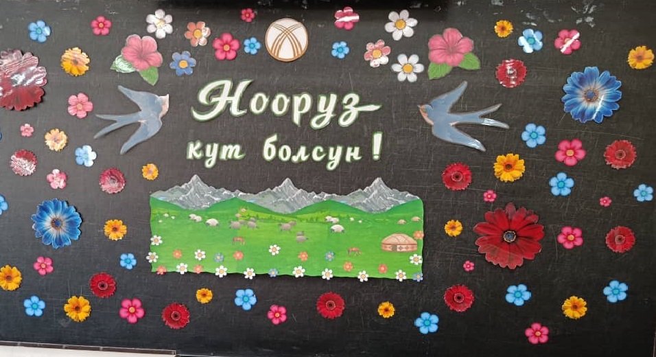 Мектептин фоеси жана мектеп алдындагы аянтча майрамдык маанайда жасалгаланды. Аны менен катар бардык класстарда «Нооруз майрамынын тарыхы» темасындагы класстык сааттар, Кыргыз тили сабактарында тематикалык викториналар сабактар , 6-8- класстар арасында «Нооруз» темасында дубал гезиттер сынагы. 3-4-класстар арасында Арт-картина: «Салам, Нооруз!» сүрөт салуу. 9-11-класстар арасында Улуттук оюндар: жоолук таштамай, эр эңиш, аркан тартыш ж.б. оюн-зооктор көрсөтүлдү.
