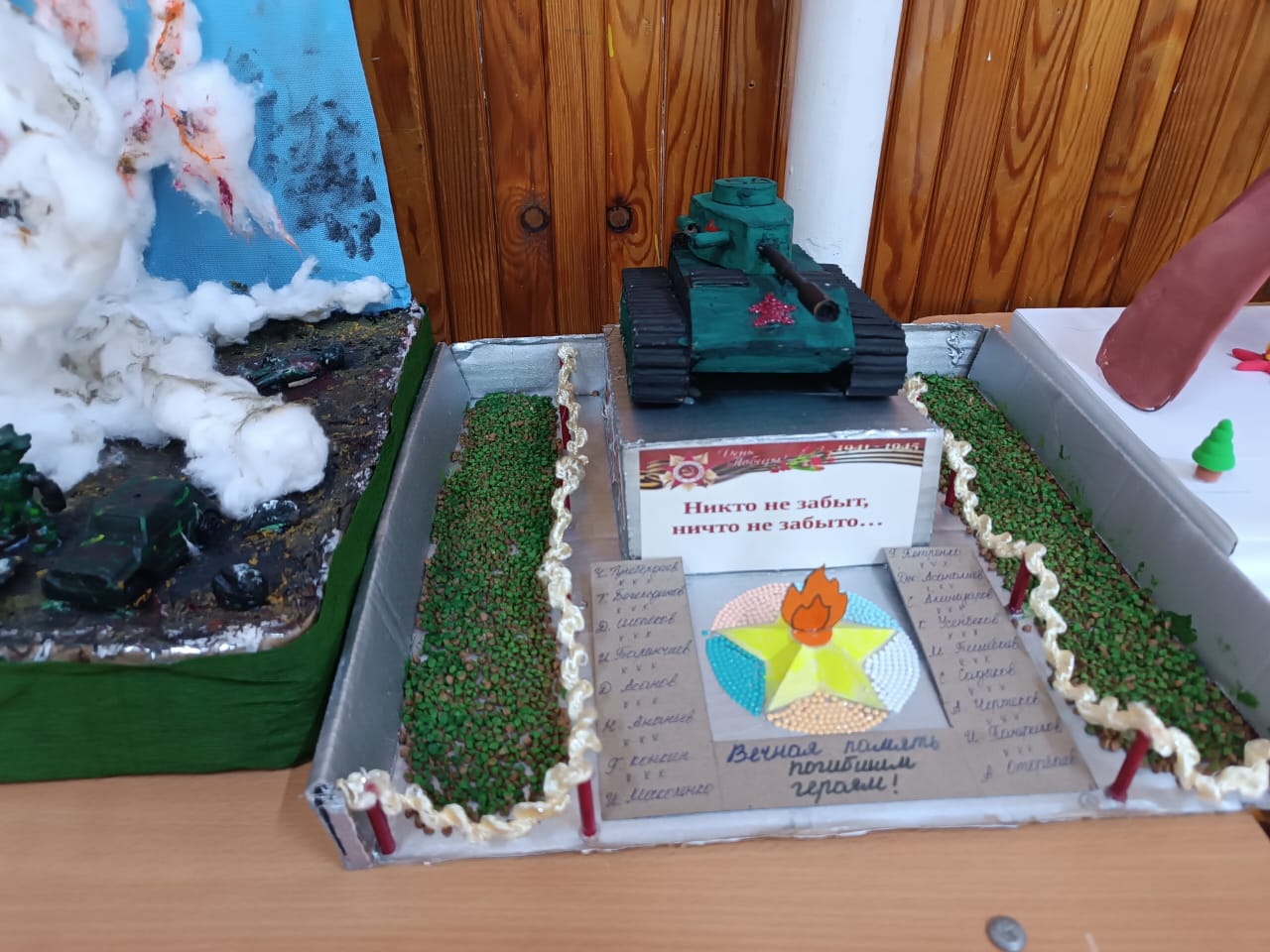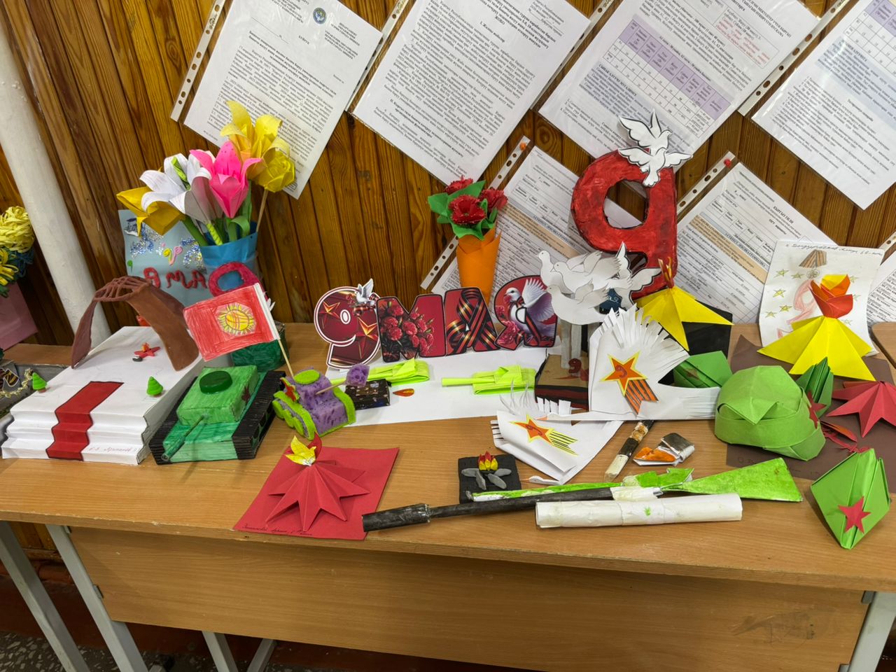 - Символы мира (5–6 классы): В фойе школы открылась выставка поделок. Ребята мастерили символы Победы.