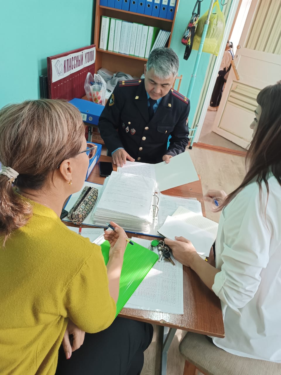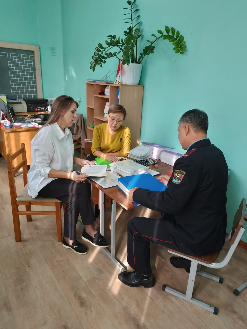 Совместно с заместителем директора школы по воспитательной работе Екатериной Владимировной Шкумат и заместителем директора по учебно-воспитательной работе Гульмирой Муркамиловной Турганбаевой были обсуждены вопросы проведения профилактических мероприятий и разъяснительной работы среди учащихся с целью предотвращения преступности и предостережения несовершеннолетних от вредных привычек. Также речь шла о предупреждении правонарушений и преступлений в отношении несовершеннолетних, нарушений общественного порядка группами лиц, драк, вымогательств, школьного рэкета и о дальнейшем укреплении сотрудничества в этой сфере.