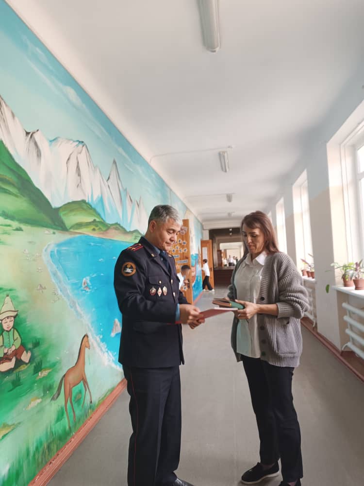В соответствии с требованиями распоряжения МВД Кыргызской Республики от 2 сентября 2025 года № 881-т «О закреплении руководящих сотрудников органов внутренних дел Кыргызской Республики за общеобразовательными учреждениями», 29 сентября 2025 года начальник Дежурной части Республиканского учебного центра МВД КР, подполковник милиции Т. Торогельдиев, посетил нашу школу.