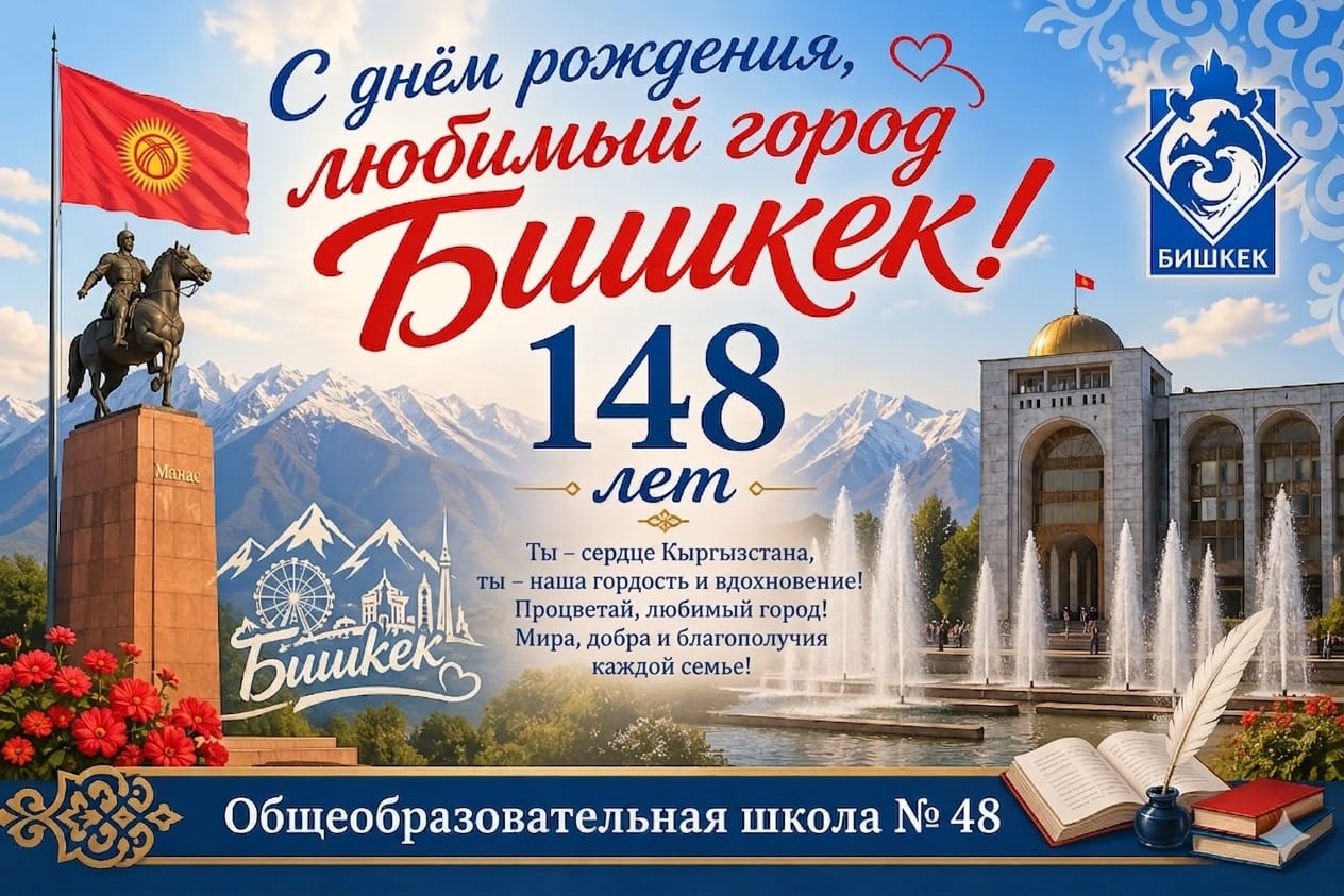 В нашей школе прошли масштабные торжества и творческие конкурсы, посвященные 148-летию города Бишкек. Этот праздник объединил учеников всех возрастов, каждый из которых смог выразить свою любовь к родному городу через искусство, творчество и цифровые технологии.