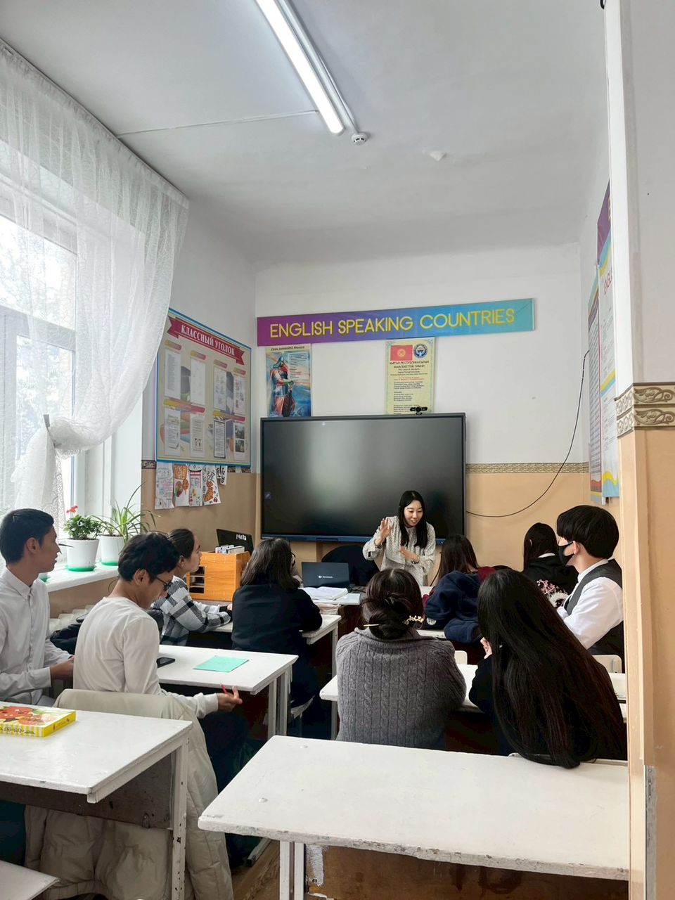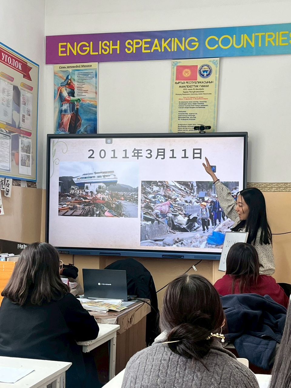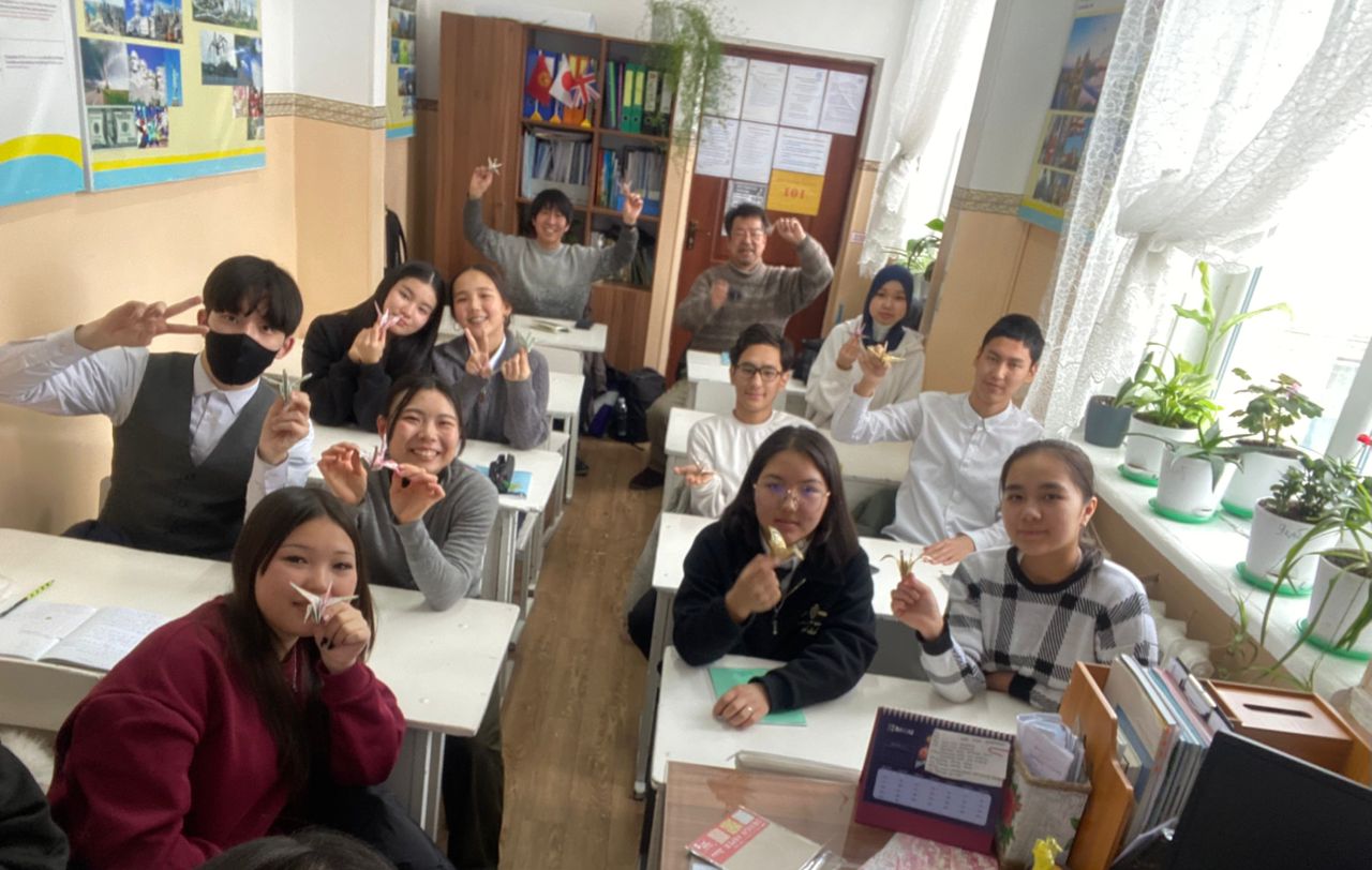 11 марта занятие Японского клуба в нашей школе, посетили три гостя. Один из них — Рихо-сан, волонтёр JICA, которая преподаёт японскую культуру в Японском центре в Бишкеке. Ещё двое гостей приехали из Японии, из Университета Тэнри (город Нара): профессор Хино и сотрудник университета Ватанабэ.