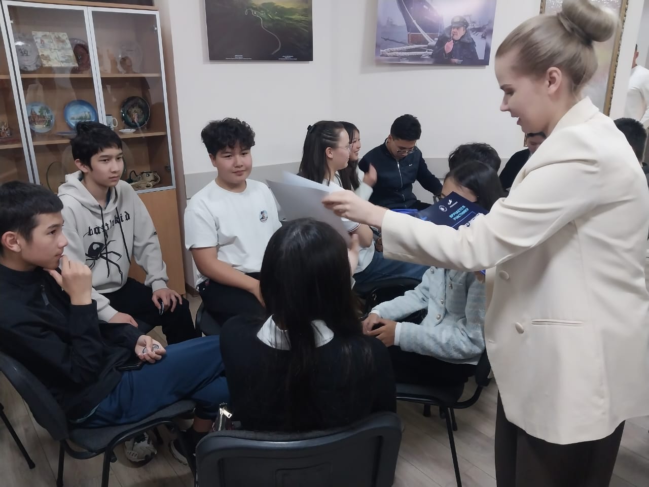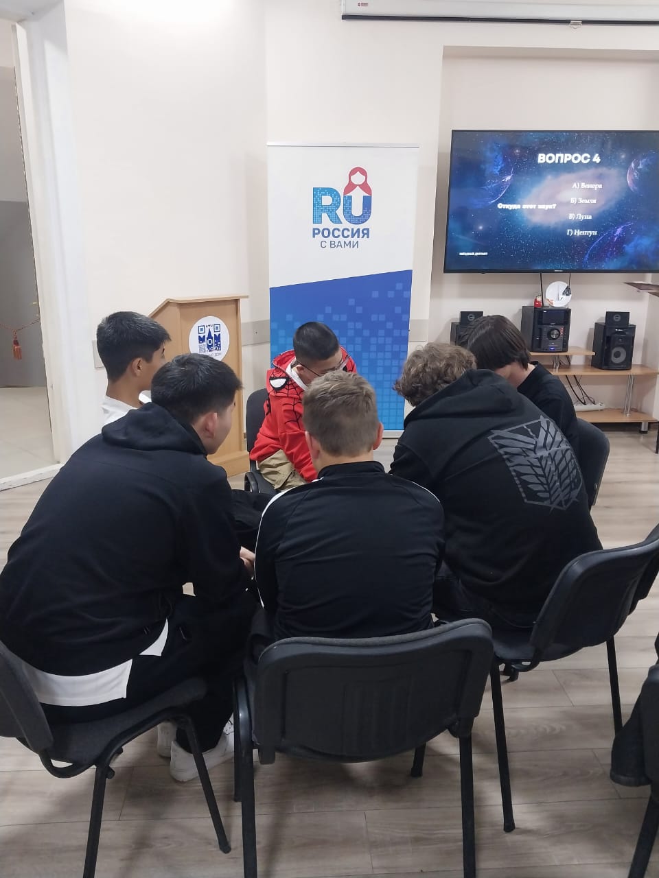 Мероприятие проводилось в честь Дня космонавтики. Ребята, вместе с классным руководителем Тезекбаевой Н. стали участниками интеллектуального квиза, посвященного истории освоения внеземного пространства.