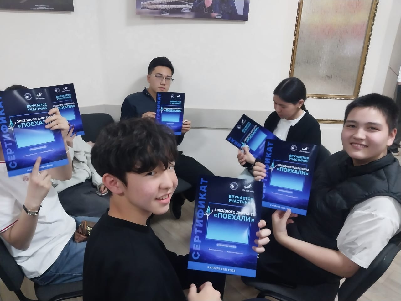 9 апреля ученики 8 «В» класса приняли участие в акции Звездный диктант «Поехали!» в Русском доме в Бишкеке.